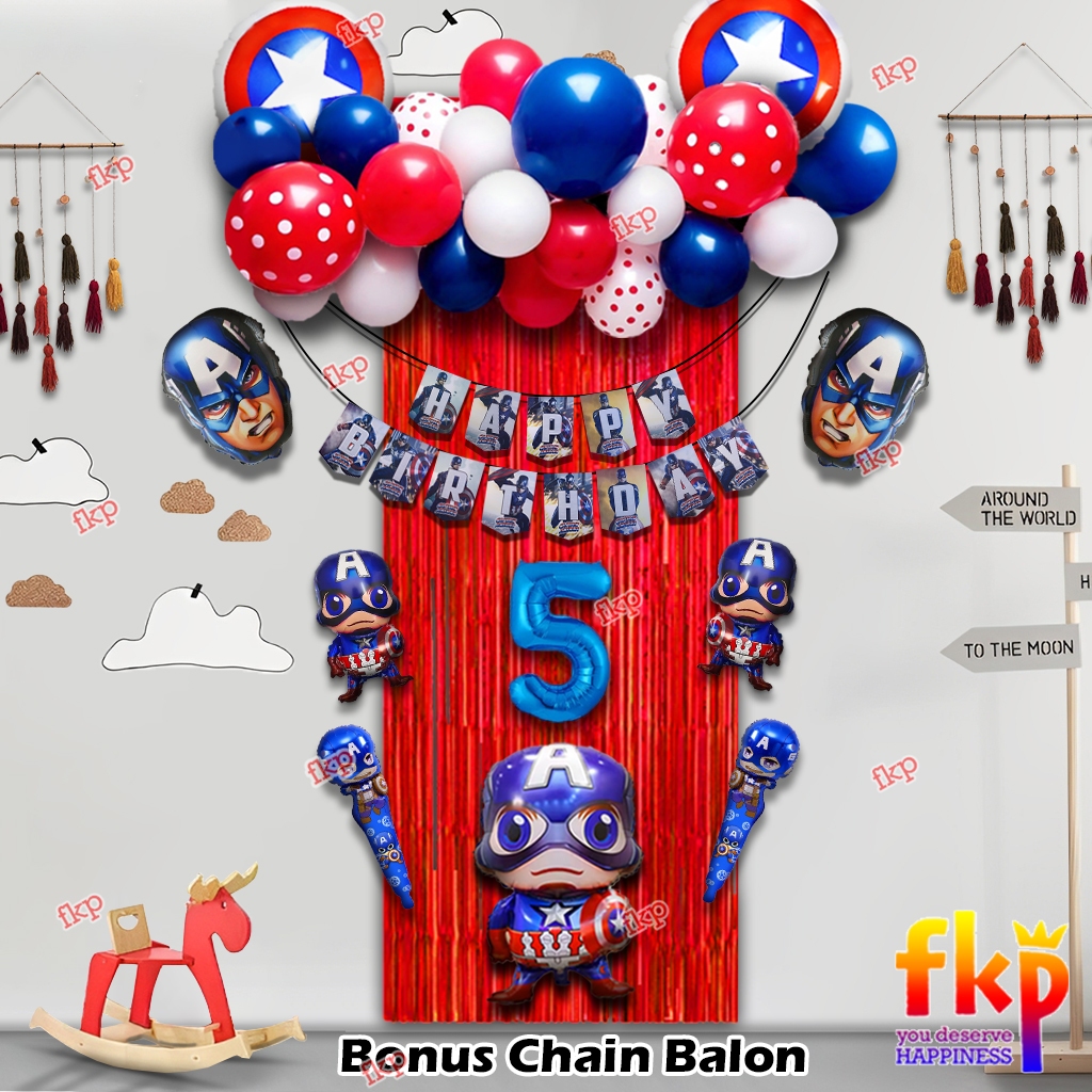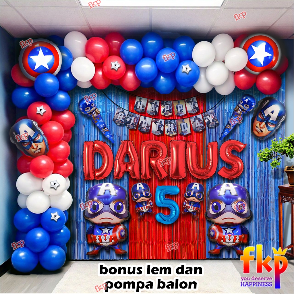 FUN KIDS PARTY - Paket Balon Foil Birthday Captain America / Balon Captain America Lengkap / Dekorasi Ulang tahun Tema