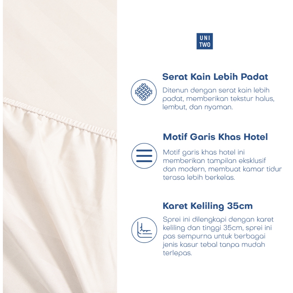 UNITWO LUXE [BED COVER+SPREI SET] Bed Cover Set Hotel Motif Salur Lembut Motif Stripe Aesthetic 200X200 180X200 160X200