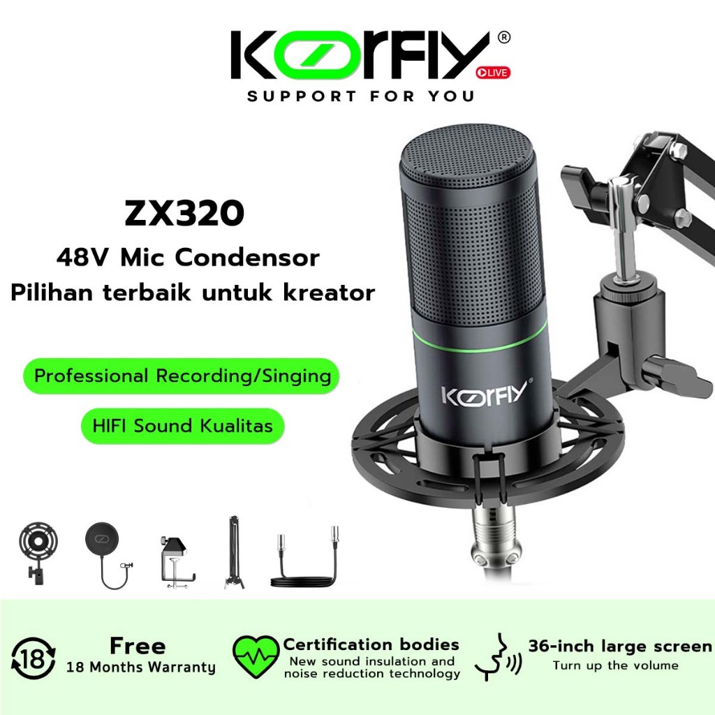 [Mall] KOORFLY ZX320 MIC CONDENSER ORIGINAL 48V HI-FI VOCAL MIC KARAOKE CONDENSER MICROPHONE SOUNDCARD KIT UNTUK RECORDING/PODCAST/LANGSUNG GAME KOMPUTER