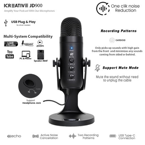 [Mall] MICROPHONE CONDENSER USB MIKROFON KONDENSOR DGN STAND - ICREATIVE JD-900