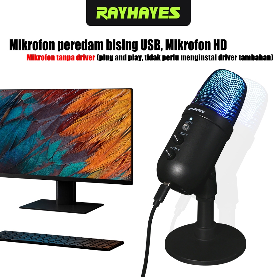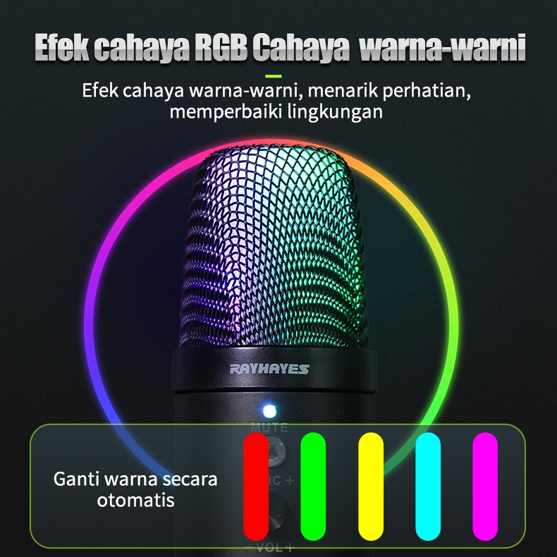[Mall] RAYHAYES MIC CONDENSER UNTUK VOCAL USB MICROPHONE PODCAST RGB PROFESSIONAL RECORDING DUBBING