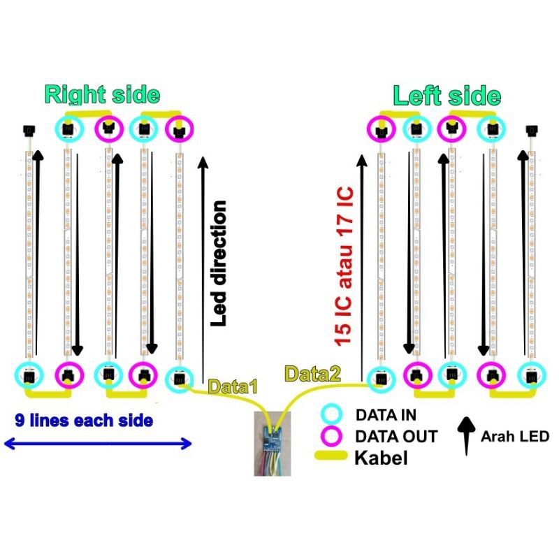 Paket Lampu led pilar bak truk RGB 150cm 170cm18 baris 24v