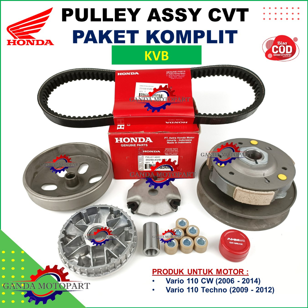 PAKET LENGKAP KIRIAN BELAKANG CVT PULLY A55Y VANBELT RUMAH ROLLER VARIO 110 KARBU CW TECHNO TEKNO KVB