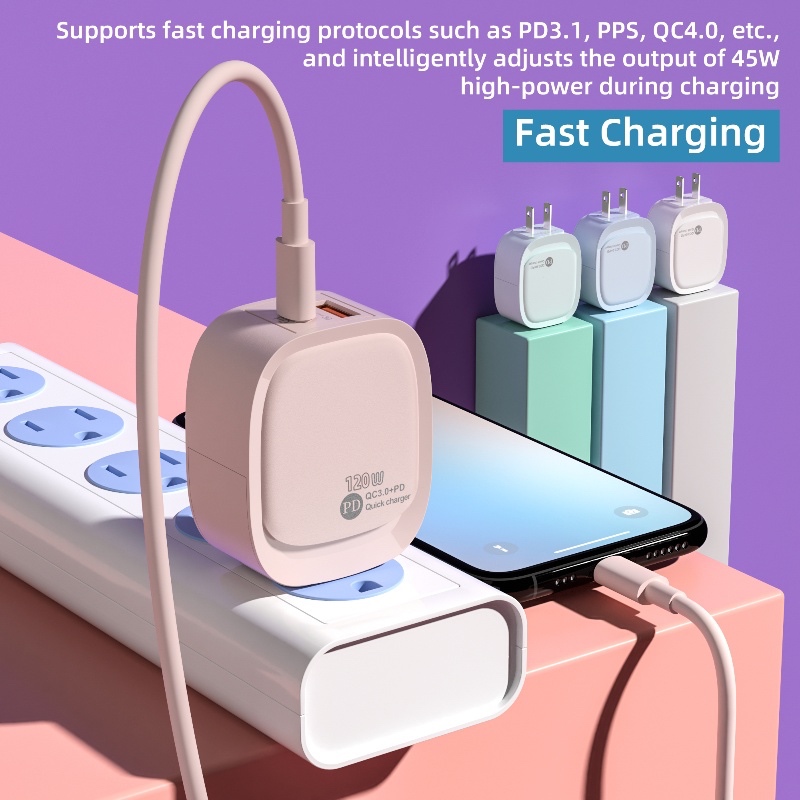 GUKOO Charger 120W Fast Charging Kuat & Compact - Port Ganda Type C/USB - Cas 5 HP Bersamaan