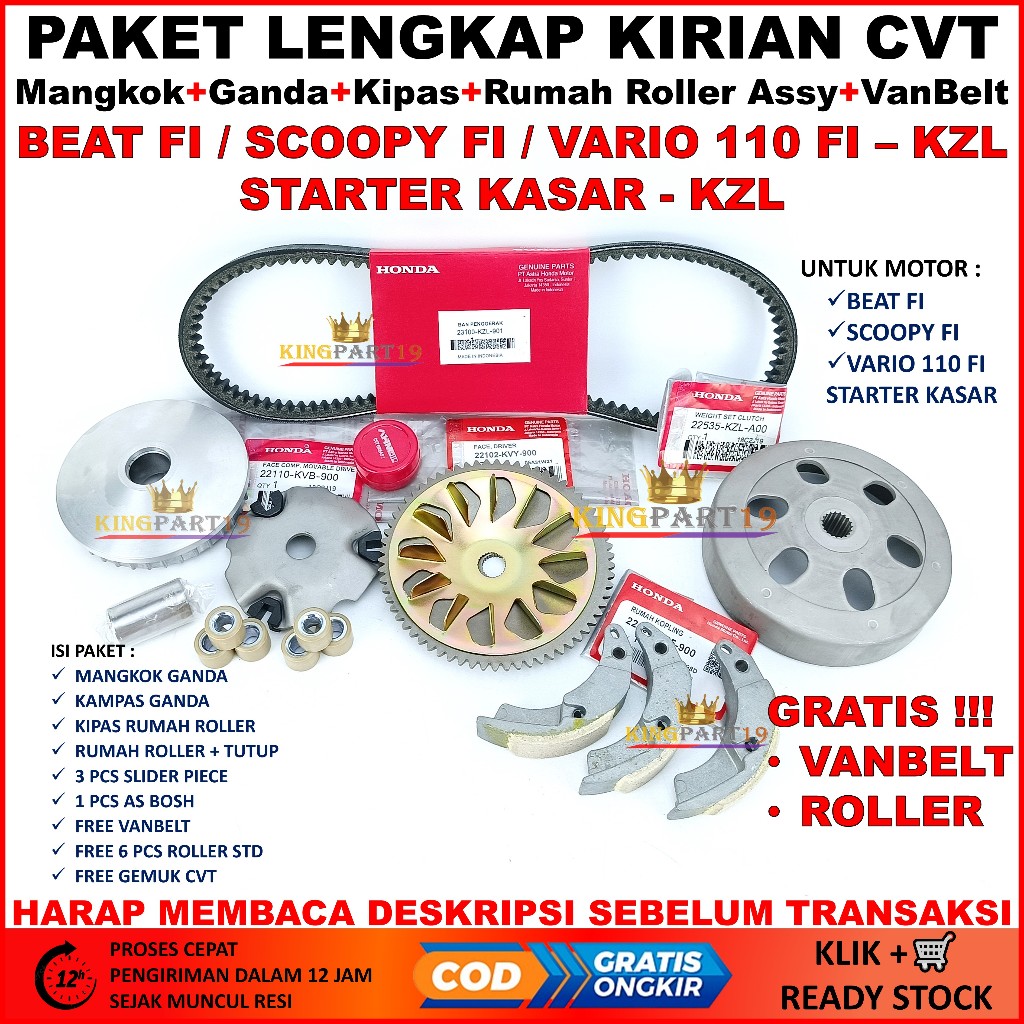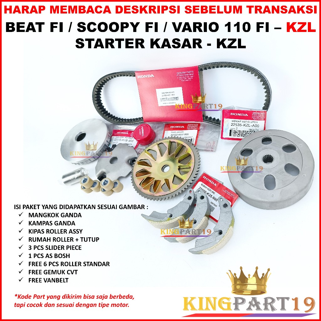 Paket CVT Beat Fi Vario 110 Fi Scoopy Fi Starter Kasar KZL Mangkok Ganda Kipas Rumah Roller Vanbelt Paket CVT Beat Fi