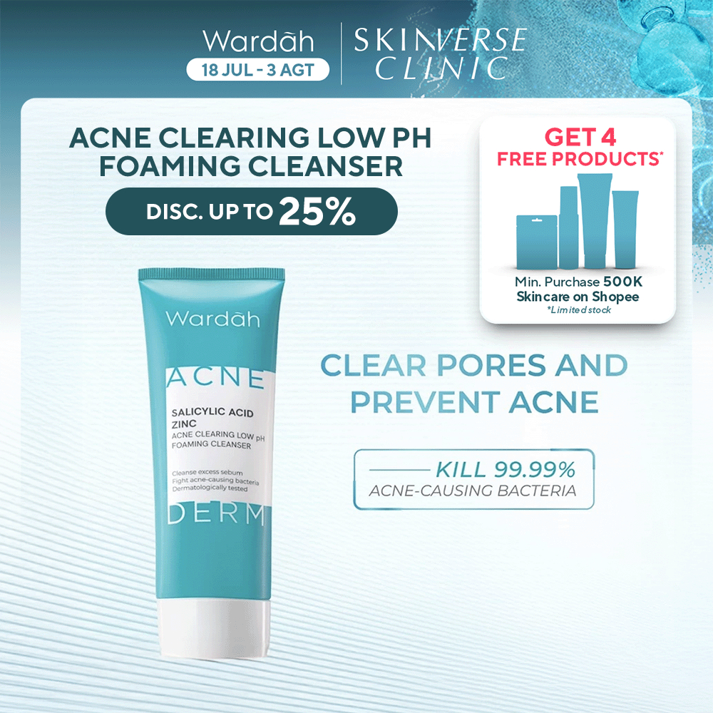 WARDAH Acnederm Salicylic Acid Zinc Acne Clearing Low pH Foaming Cleanser - Skincare
