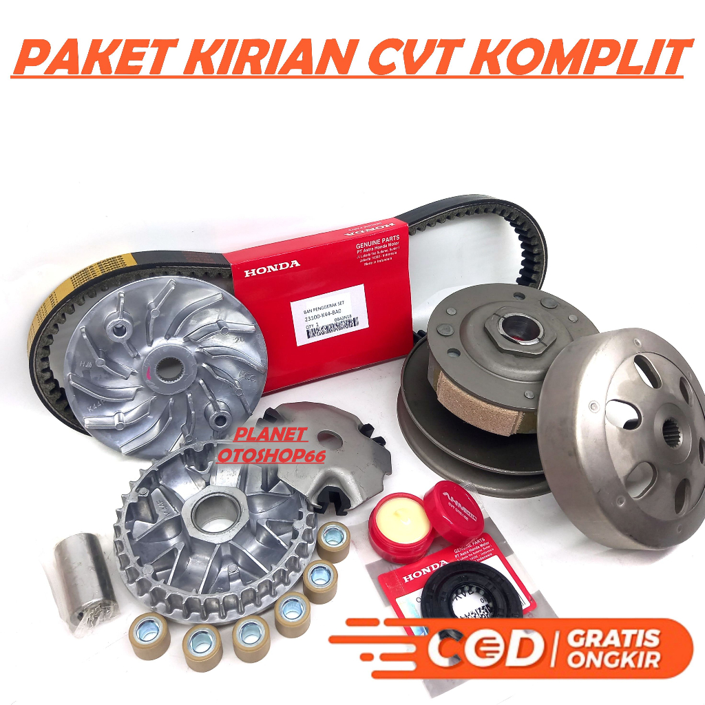 PAKET KIRIAN CVT KOMPLIT K44 HONDA BEAT ESP / BEAT POP / BEAT STREET / SCOOPY ESP / VARIO 110 FI LED / PULLY A55Y / GREASE CVT / VANBELT K44 / SEAL KRUK AS / RUMAH ROLLER SET / KIPAS RUMAH ROLLER SET