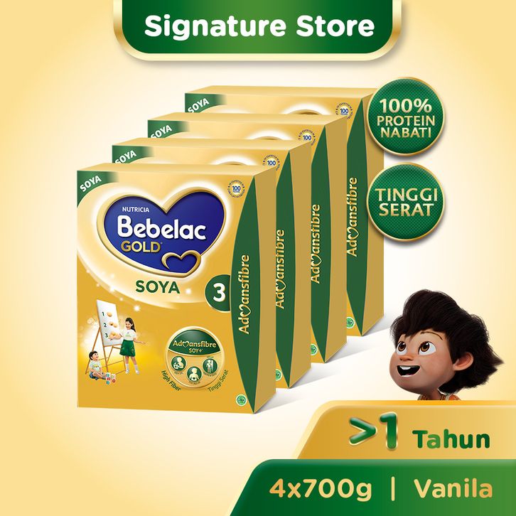 Bebelac Gold Soya 3 Vanila Formula Soya Bubuk 700 gr x 4 Original Official Store