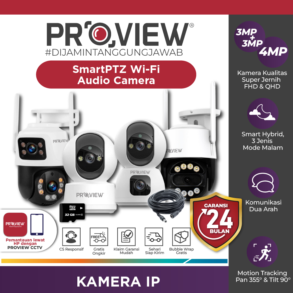 PROVIEW CCTV Wifi Outdoor Indoor PTZ Single Dual Lens Kamera Jarak Jauh Lewat HP