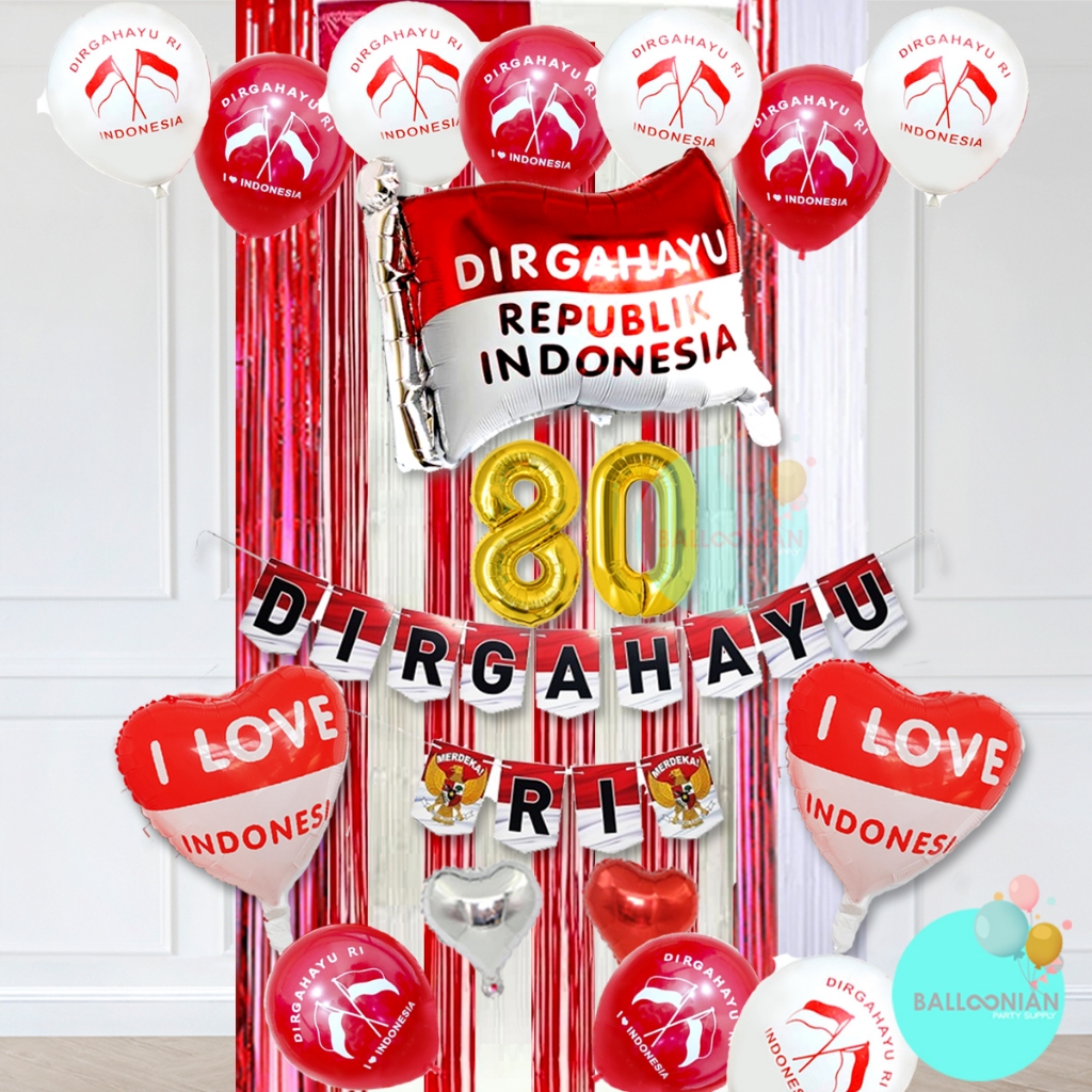 DIRGAHAYU BANNER SEGI 5 DEKORASI SET/DEKORASI HUT RI MURAH/17 AGUSTUS/HUT RI