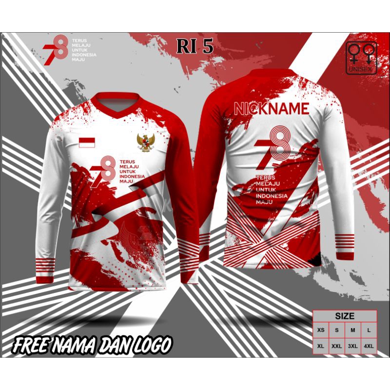 Jersey kemerdekaan Indonesia ke 78 kaos hut kemerdekaan ri ke 78 Lengan panjang baju dirgahayu Indonesia 2023