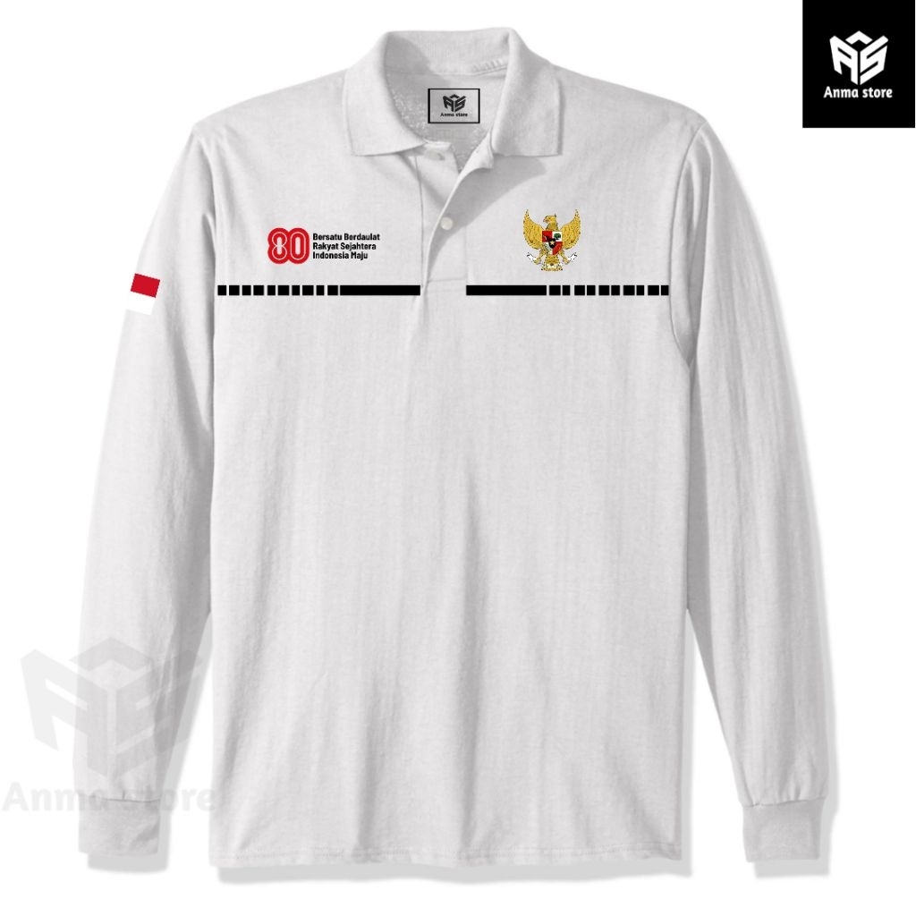 Kaos Kerah Polo shirt Lengan Panjang Kemerdekaan 17 Agustus HUT 80 RI Dirgahayu Indonesia Dotted