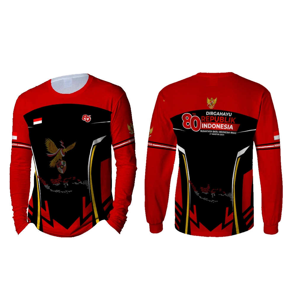 Kaos Pria Lengan Panjang 17 Agustus 2025 Dirgahayu HUT RI Ke-80 Fulprint