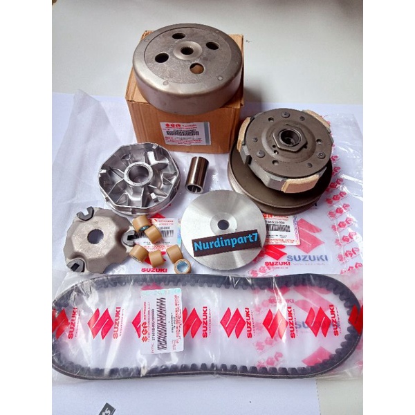 Paket CVT Pulley Pully Assy + Kipas & Rumah Roller Assy Set + V-belt Spin Skywave