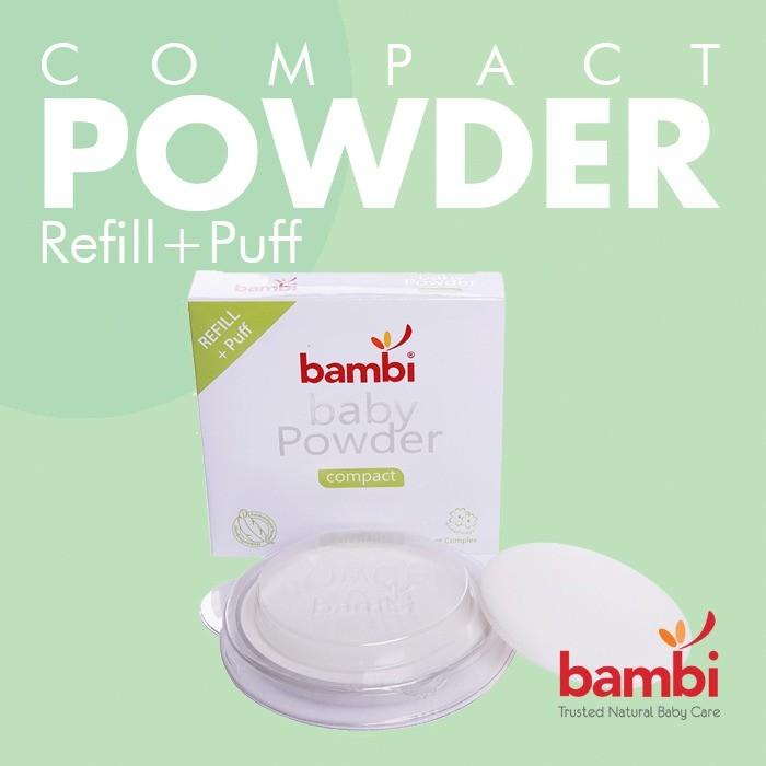 BAMBI Compact Powder 40gr Bedak Padat Bayi Aromatheraphy Powder Cake - Refiil + Puff