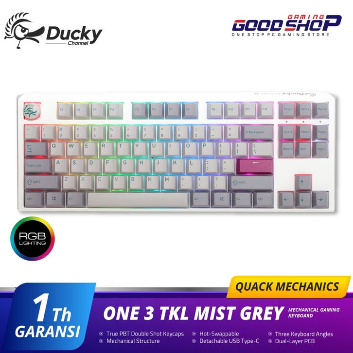 DUCKY ONE 3 MIST GREY TKL HOTSWAPPABLE MECHANICAL KEYBOARD