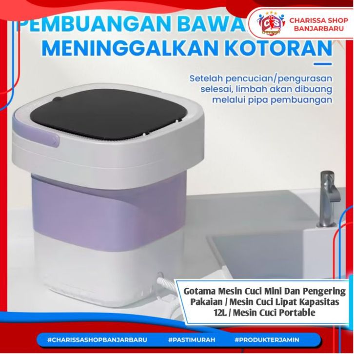 Gotama Mesin Cuci Mini Dan Pengering Pakaian / Mesin Cuci Lipat Kapasitas 12L / Mesin Cuci Portable