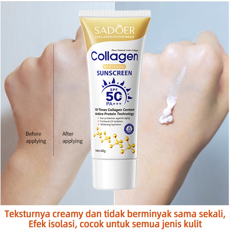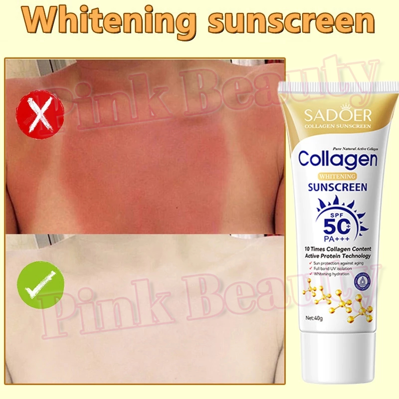 Collagen Whitening Sunscreen Kolagen Pemutih Glowing Up Sunblock Cream SPF50+ PA+++ Wajah Dan Badan Sunscreen Sun Protec