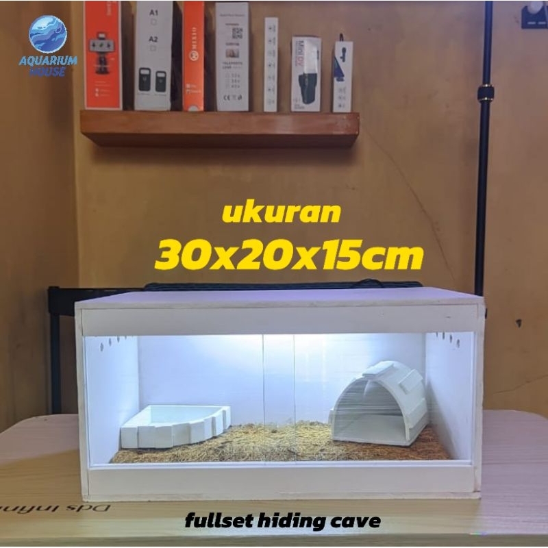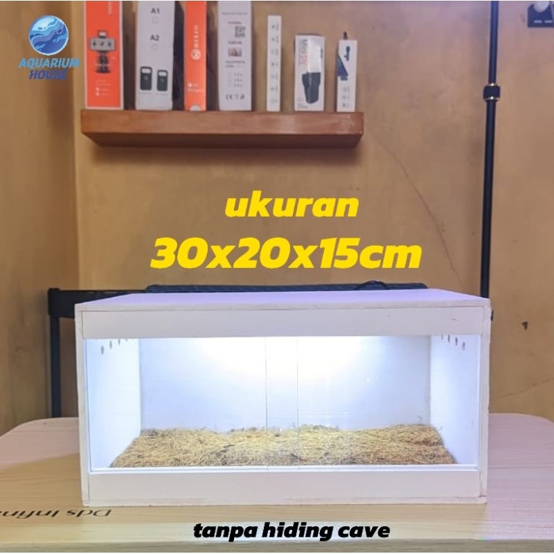 kandang reptil/terarium Fullset lengkap PVC aklirik mewah dengan lampu LED usb