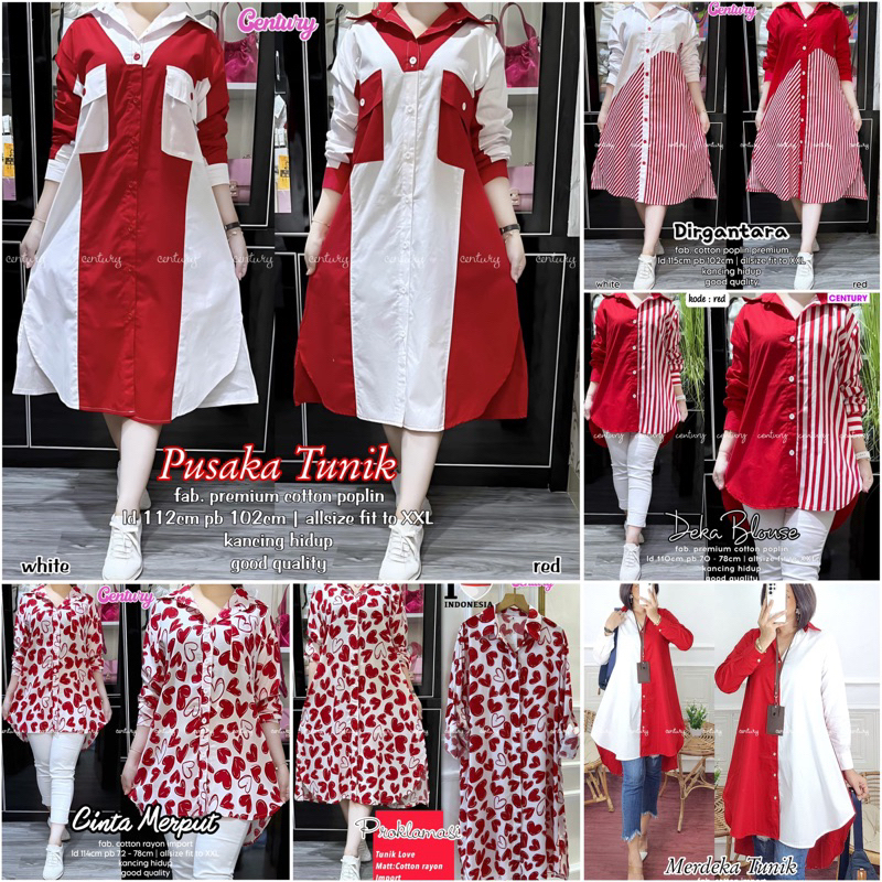 Dirgahayu tunc merah, Ceremony blouse, Jaya tunic red, Jaya tunic white, Surya blouse, Deka tunik, Kaula merah, Kaula putih, Almira, Serra 2, Deka morena, Country tunik#2, Patriot blouse #2, Lenna, Hesty, Kemerdekaan, Fajar blouse, Proklamasi blouse, Sarita tunik, Lovemy blouse, Patih, Pelita tunic red, Pelita tunic white, Peace tunic red, Peace tunic white, Bangsa polka, Bangsa merah, Raya, Indo tunic red, Indo tunic white, Love blouse, Race, Freedom, Bhineka tunic, Lovemy putih, Celsia blouse, Indonesia tunc white, Indonesia tunic red, Makmur tunik white, Imelda blouse, New patriot blouse, Mirah blouse, Barisan blouse, Asila, Binda, Nusa standart, Nusa jumbo, Deka, 2 Fadil blue, 2 Fadil coral, Nirwana black, Nirwana white, Love tunic, Raya merah, Raya putih, Belina, Cinta merput, Merdeka tunik, Deka blouse, Proklamasi tunik lov, Dirgantara red, Dirgantara white, Pusaka tunik red, Pusaka tunik white, Rajawali tnk2 red, Rajawali tnk2 white, Sarangheo blouse red, Sarangheo blus white, Sling red, Bangsa tunik, Dirgantara tnk besar, Dirgantara tnk kecil, Raya blouse, Denim 17 dark, Denim 17 light, Republik blouse, Jaya blouse, New layer blouse, Atika blouse red A, Pancasila blouse, ZOZO NAVI, ZOZO BLUE, Arena, Netta, Atika blouse red B, Friska, Narita, Armel
