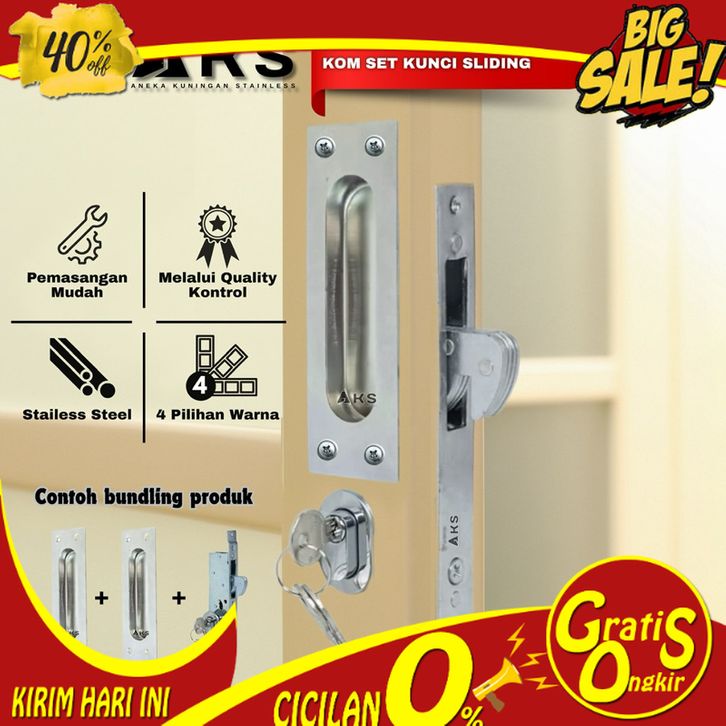 Paket Handle Kunci Tarikan Pintu Sliding Alumunium Kayu Geser Model Oval dan Kotak - Warna Silver Hitam Coklat Putih