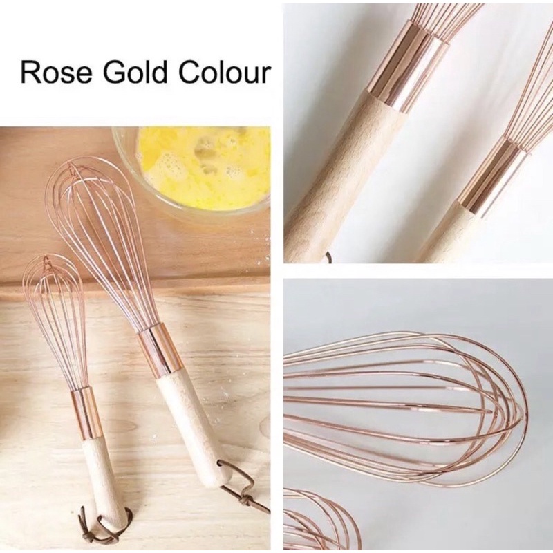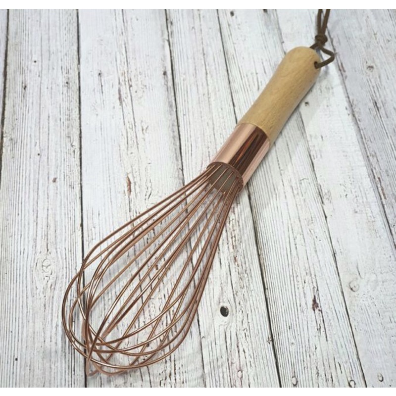 WHISK ROSE GOLD STAINLESS WOOD HANDLE 25.5x6cm/PENGOCOK TELOR MANUAL/ALAT PENGOCOK TELOR GAGANG KAYU