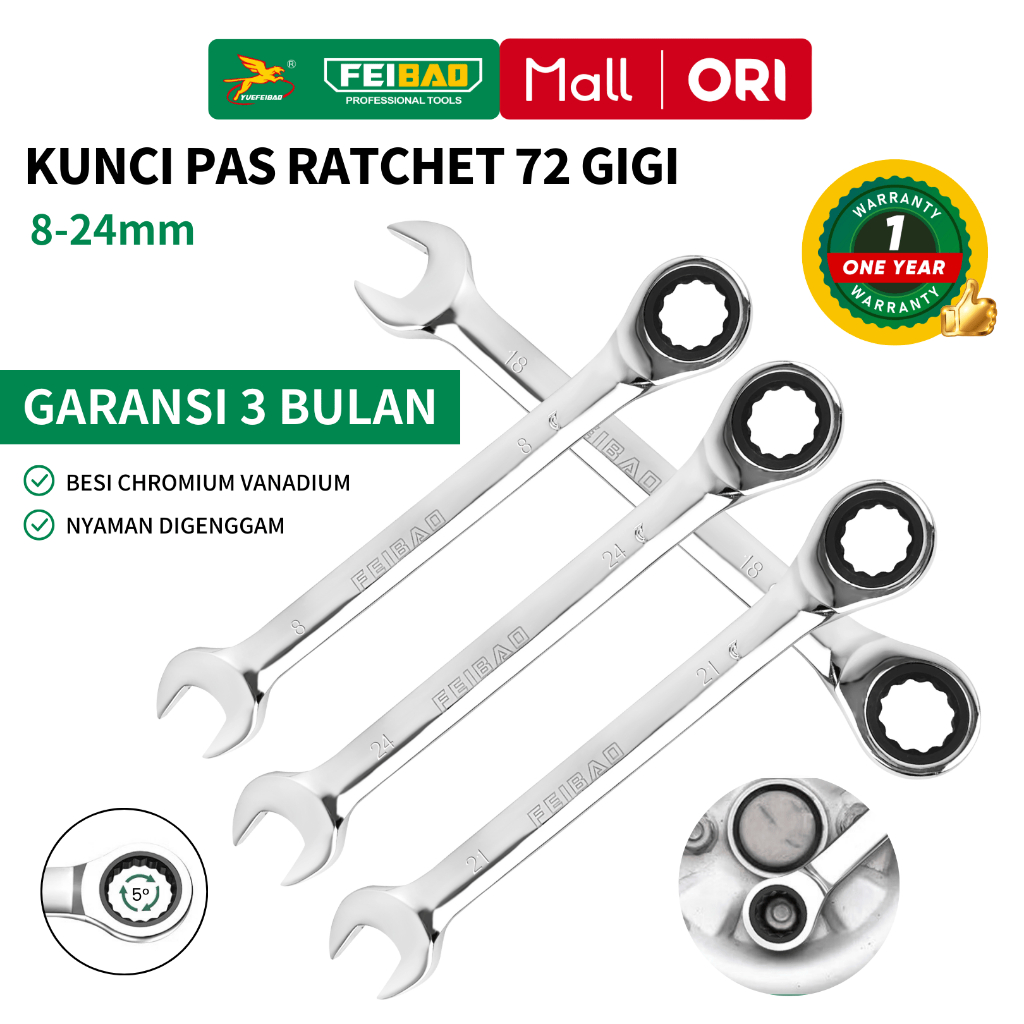 Feibao Kunci Ring Pas Ratchet CR-V 8-24mm Kunci Ring Alat Pertukangan Premium