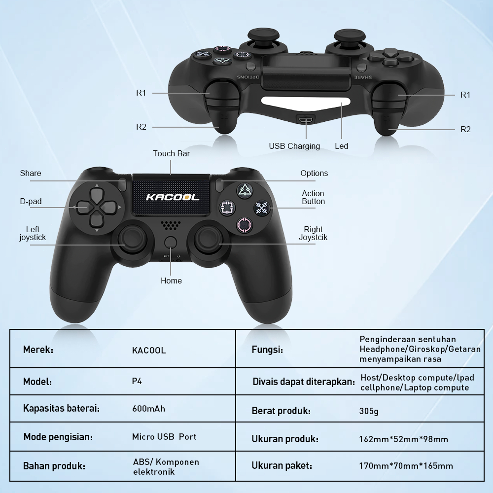[Mall] KACOOL GAMEPAD JOYSTICK KONSOL BLUETOOTH PENGONTROL GAME P4 NIRKABEL GETARAN GERAKAN GANDA