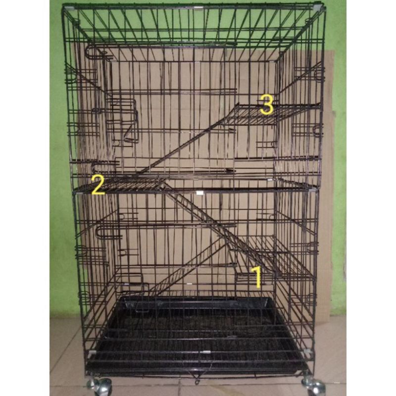 KANDANG KUCING / KANDANG HEWAN / KANDANG BESI LIPAT SIZE L TINGKAT 3 BESI LEBIH TEBAL CAT COUTING UKURAN 60X45X90CM WARN