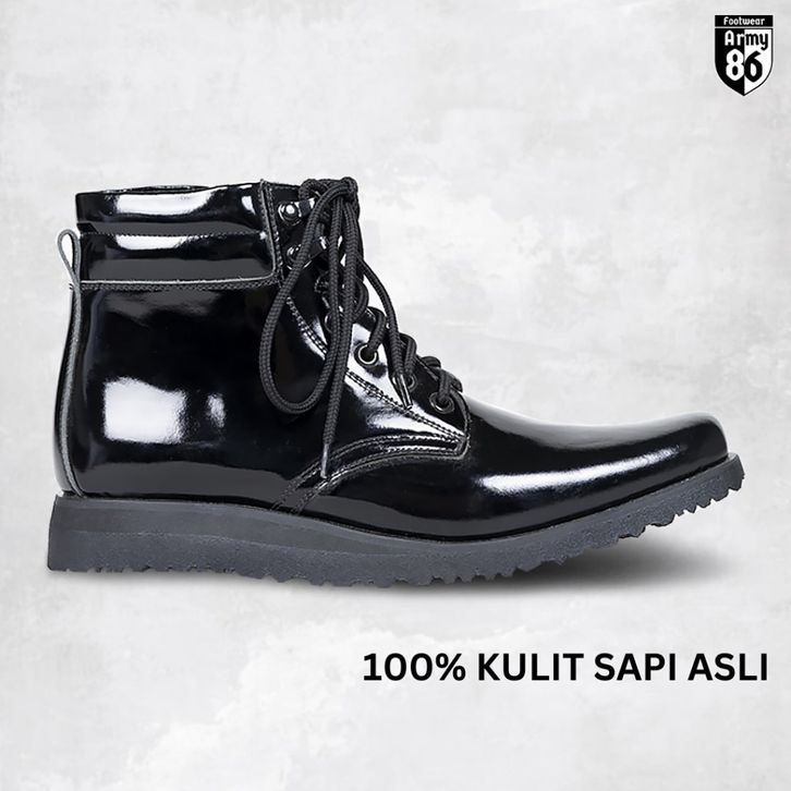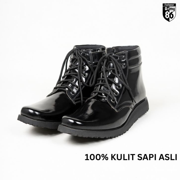 Army86 Sepatu PDH TNI POLRI Pria Satpam Kullit asli Tali hidup Model WAVE