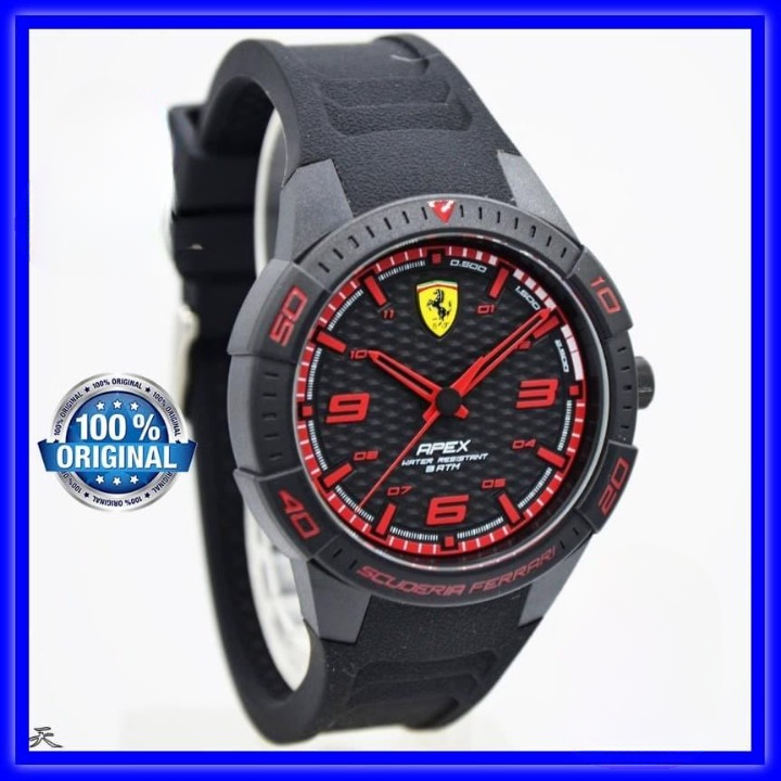 JAM TANGAN PRIA FERARRI 0830249 ANALOG WATCH RUBBER STRAP BLACK ORIGINAL MURAH TERLARIS