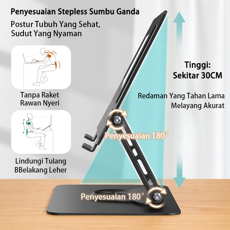 [Mall] AKONA STAND LAPTOP ROTASI 360° ALUMINIUM FAN COOLER COOLING PAD LAPTOP LIPAT PORTABLE SILENT 2 KIPAS PENDINGIN LAPTOP FOR 11-17,3 INCI