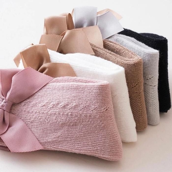 Kaos Kaki Anak Bayi Perempuan KB JQ QE / Baby Socks with Ribbon - Black, M (1-3Y)