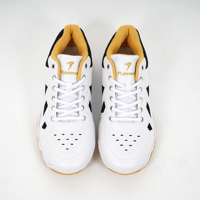 Flypower Losari 06 Sepatu Badminton Pria Wanita White Black Gold Ringan, Anti Slip, Nyaman Cocok