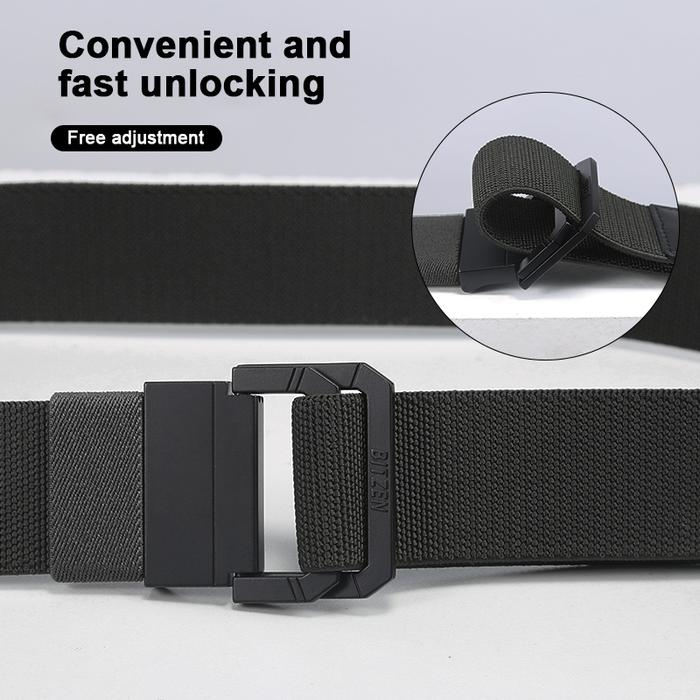 Bitzen Ikat Pinggang Pria Ganda Nylon Canvas Gesper Putar Sabuk Berkualitas Premium