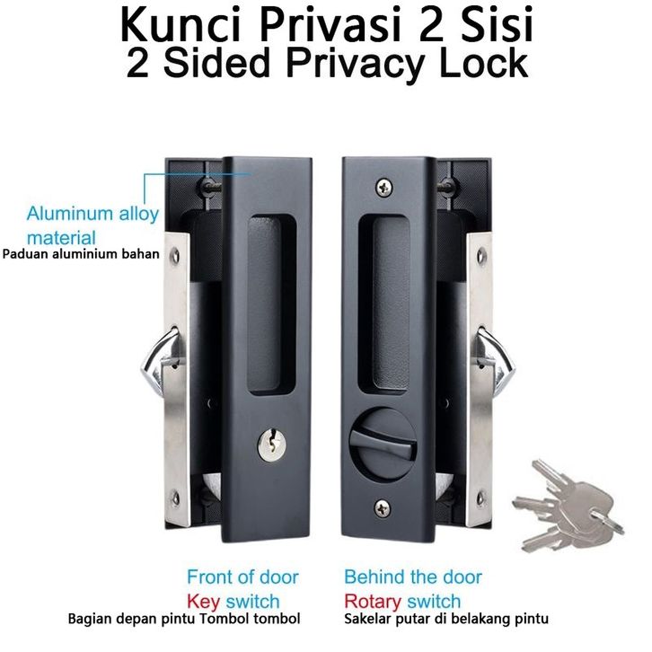 Kunci Pintu Geser Tersembunyi Anti Maling untuk Balkon - Kunci Persegi Kuat, Cocok untuk Pintu Kayu, Aluminium, dan Kac