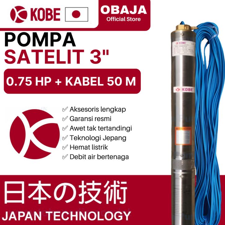 KOBE Pompa Satelit 3 inch 0.75 HP + Kabel 50 M/ Pompa Submersible Kobe 0.75 HP