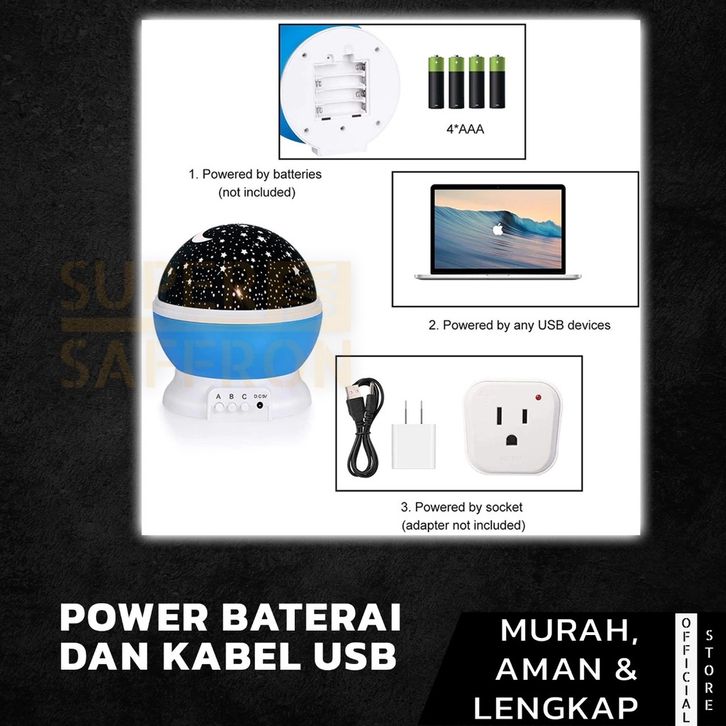 Lampu Tidur Aesthetic Star Proyektor Karakter LED Rotating Bintang Bulan Baterai Lamp