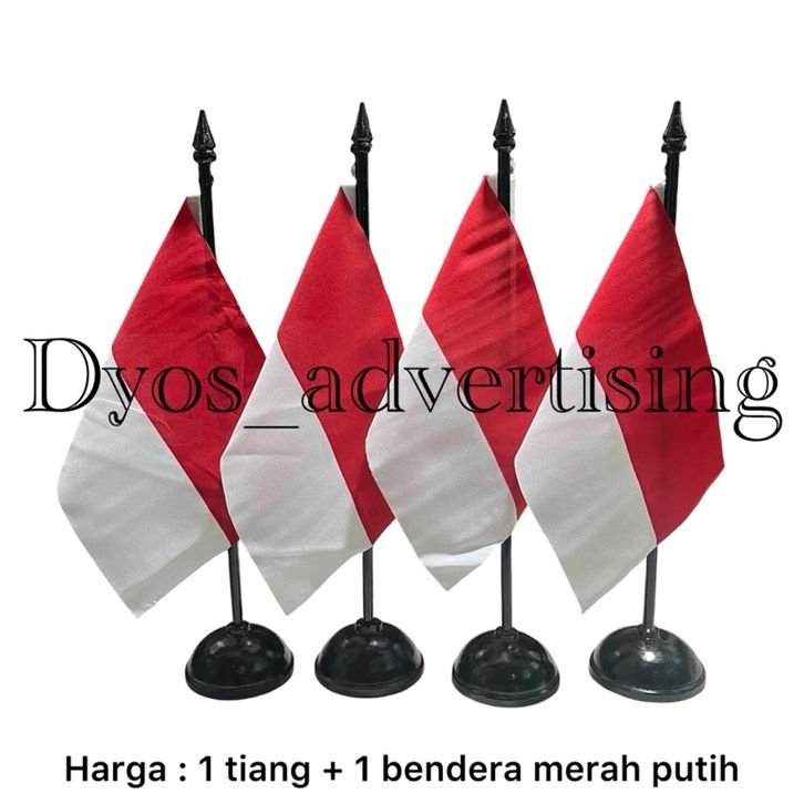 TERBARU Bendera merah putih + tiang kayu meja satu set ufimnc