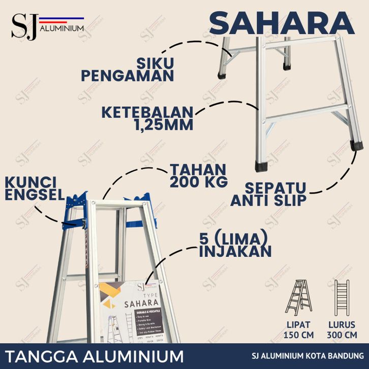 SAHARA - Tangga Aluminium Lipat Multifungsi / Aluminium Ladder - Biru 1,5 Meter / 150 CM