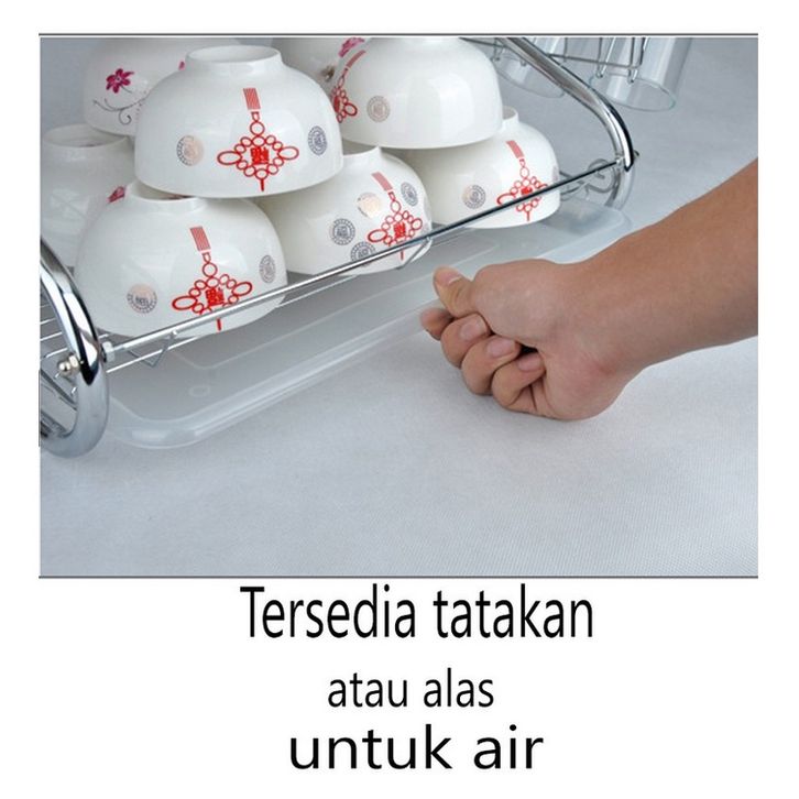 Rak Piring Minimalis / Rak Piring Stainless 2 Tingkat Perlengkapan Dapur Ukuran 35 x 24 x 38 Cm