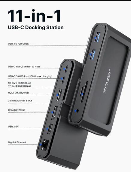 JSAUX 11-in-1 Multi-Function USB-C Docking Station HB1101 for Steam deck LCD and OLED