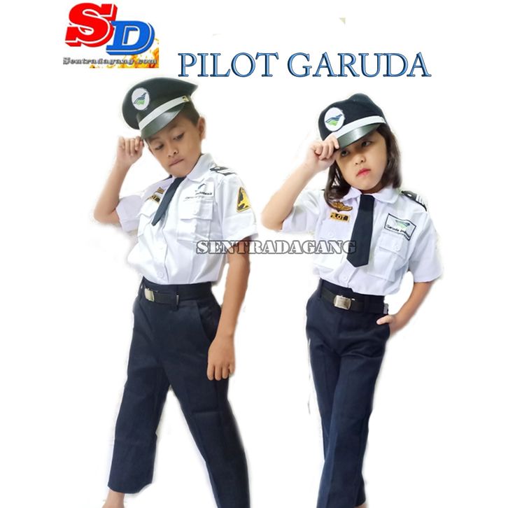 GROSIR BAJU PILOT GARUDA / BAJU PILOT / Baju Profesi Anak Pilot Garuda – Kostum Anak Karnaval Seragam Lengkap
