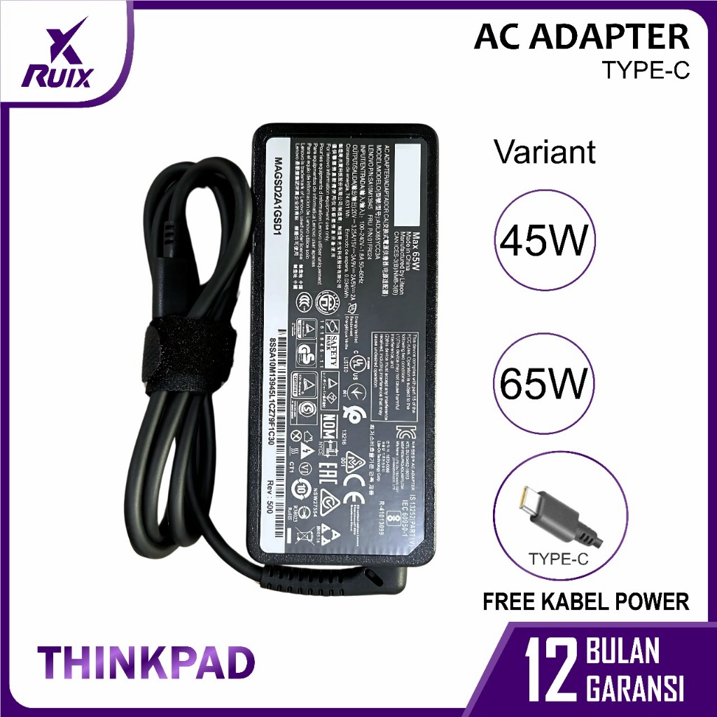 [Mall] RUIX ADAPTOR CHARGER LAPTOP THINKPAD IDEAPAD YOGA SLIM TYPE C 65 45W/65W FREE KABEL POWER