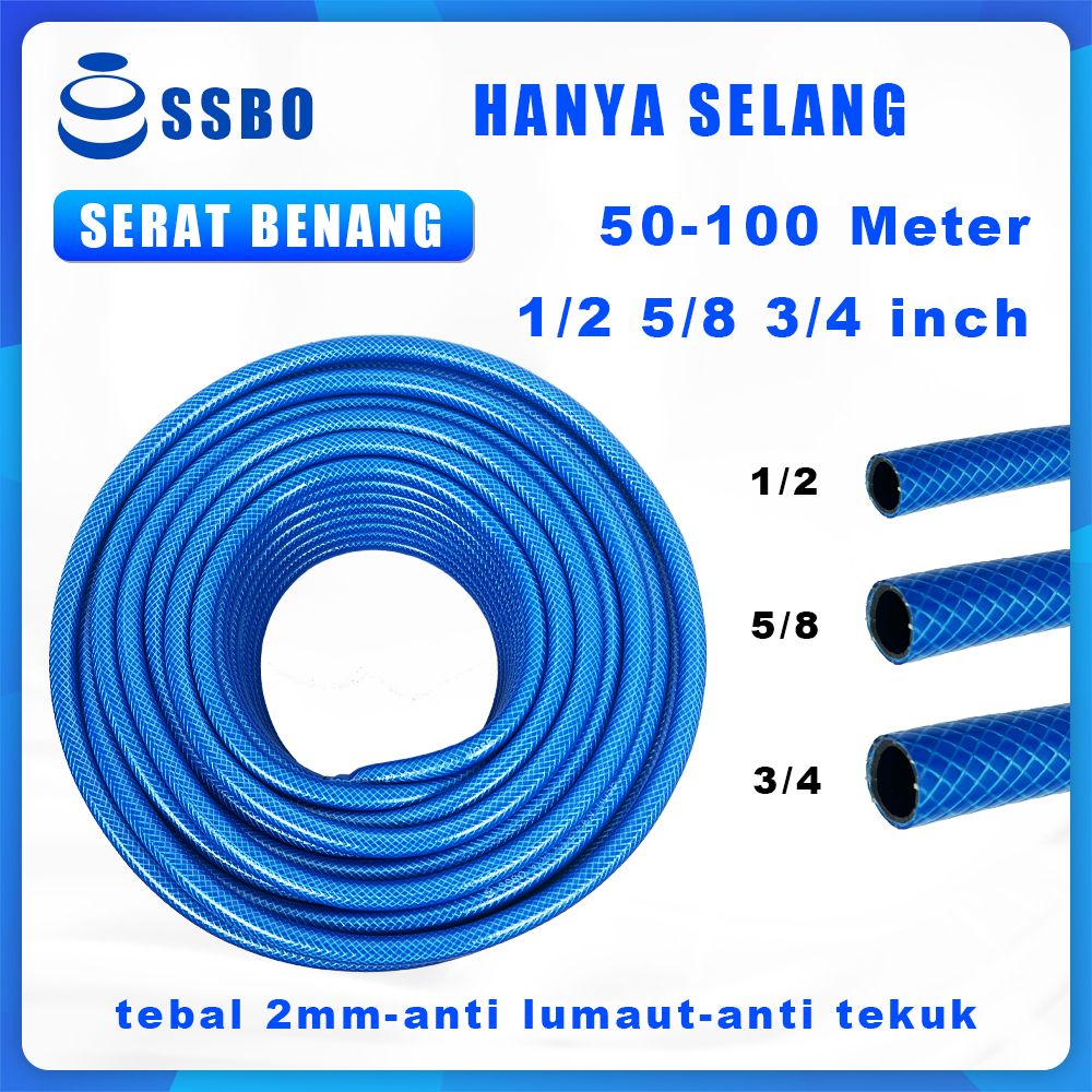 Selang Biru Selang Air 3 Lapis (50m / 100m) – Serat Benang, Anti Bocor, Ukuran 1/2, 5/8, 3/4 inch
