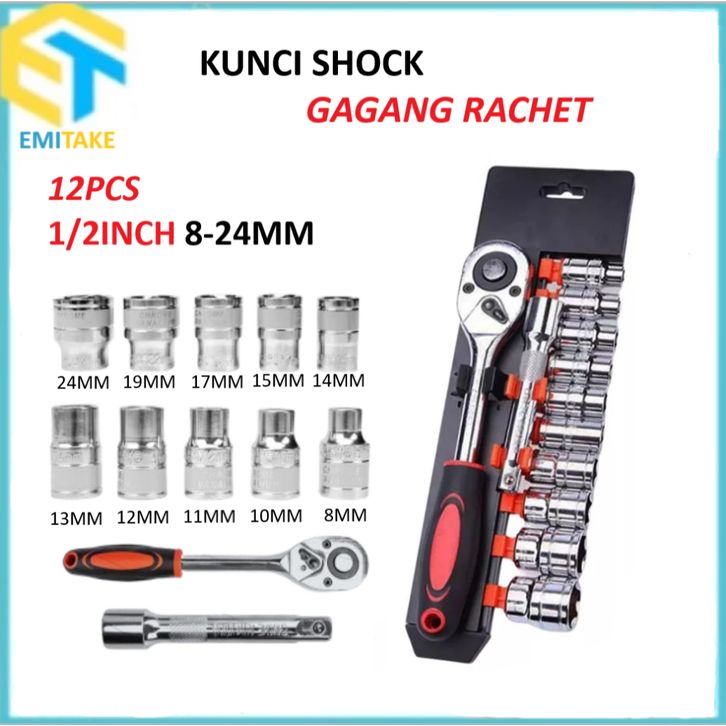 Kunci Socket Sok Set 12pcs 1/2Inch Socket Wrench Kunci Pas Multifungsi Kunci Gagang Rachet