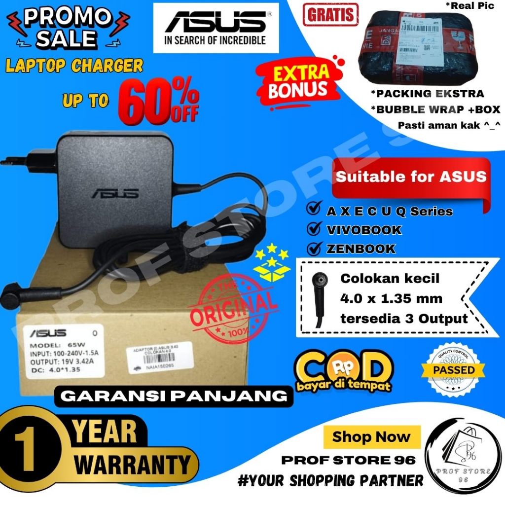 [Mall] [GARANSI 1 TH] ORI CHARGER LAPTOP ASUS VIVOBOOK ZENBOOK SEMUA TIPE M, X, Q TP X A E X200 X453 X441