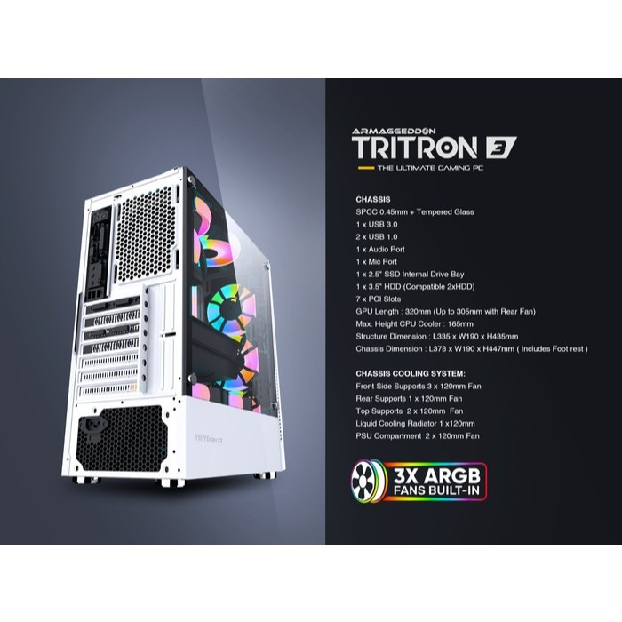 [Mall] ARMAGGEDDON CASING PC GAMING TRITRON 3 ATX WITH ARGB FAN