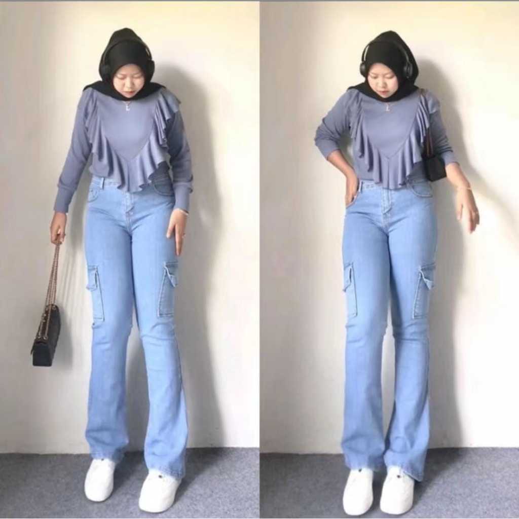 HW Cutbray Jeans Wanita - Celana Cutbray Strecht Kekinian - Cutbray Flared- Streetch Premium Quality