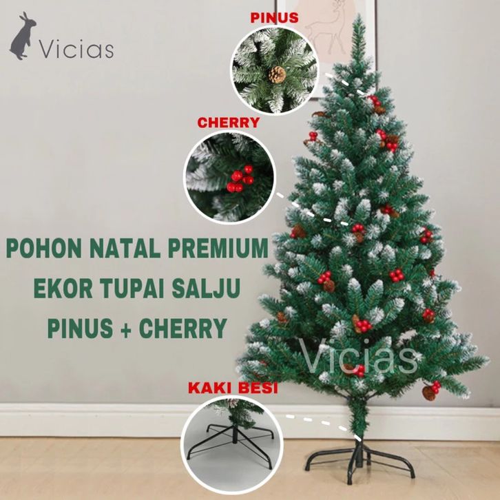 [DUNIA STORE] 1,5 Meter Pohon Natal 150CM Ekor Tupai Salju Pinus PINE CHERRY Ceri 5feet Murah 2Meter